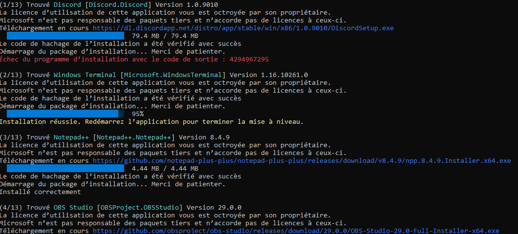 Des validations Windows vont être nécessaire pour certaines applications et d'autres seront trop neuves pour l'installer